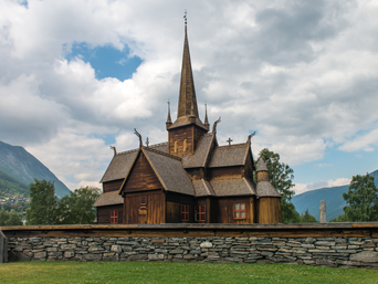 Stop for photos at Borgund Stave Church, a stunning medieval wooden church with Viking elements.
