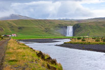 Views of Skogafoss and Seljalandsfoss waterfalls.