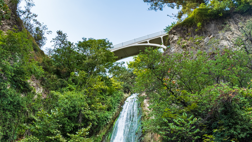 Snap photos at Leghvtakhevi Waterfall and cross the Bridge of Love